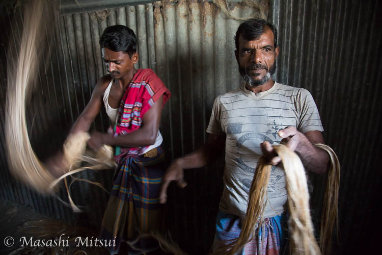 バラバラだったジュートの繊維をまとめている男たち