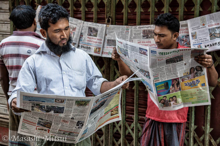 新聞を読む男たち。ホルタル(ゼネスト)の話題で持ちきりだ
