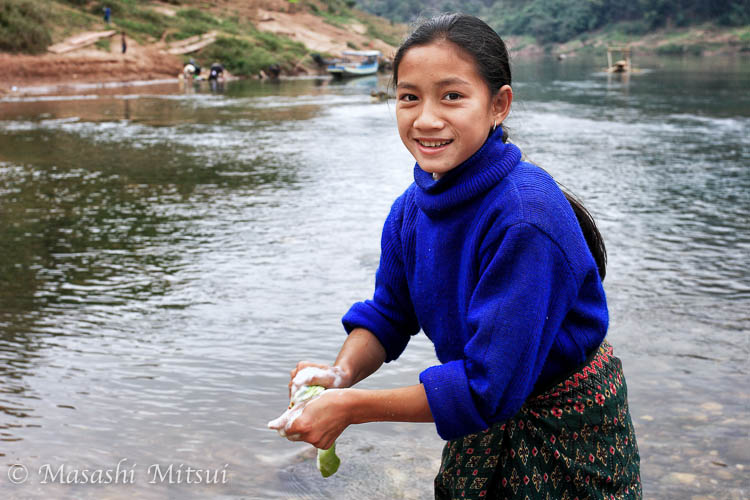 ラオス北部の山岳地帯にある小さな町には、必ず川があった。 乾季には歩いても対岸に渡れるような小さな川だが、やがては大河メコンに合流する。 川岸にはいつも洗濯をしたり水浴びをする人々の姿があった。