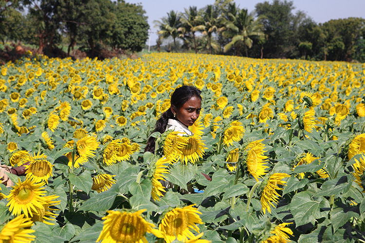 南インドには、あちこちにヒマワリ畑が広がっていた。