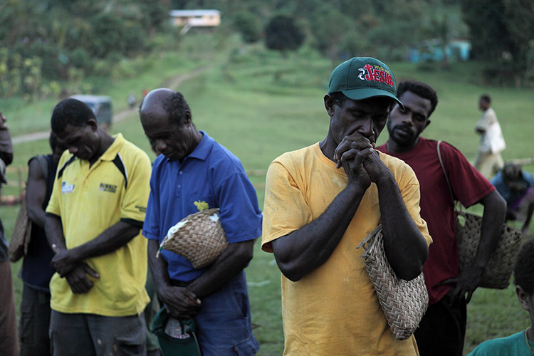 キリスト教徒であるパプア人が、一日の終わりを牧師さんの説教とともに迎える。