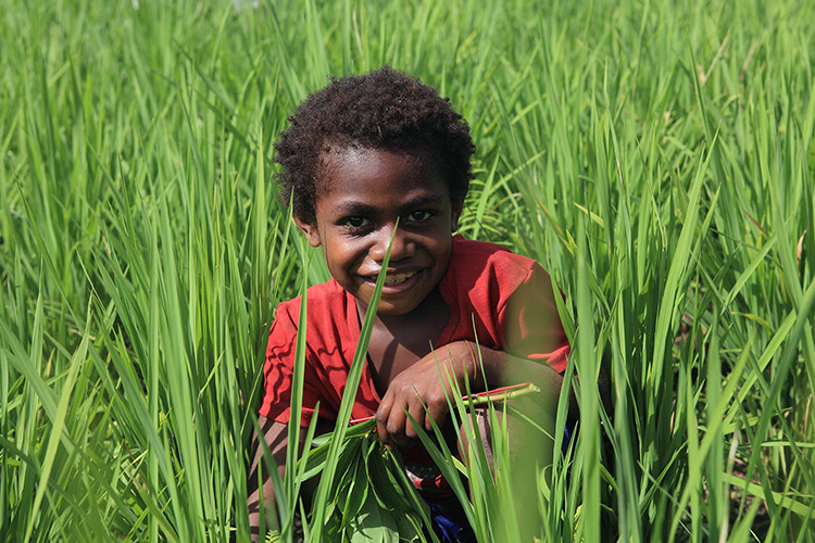 パプアニューギニアの主食は長らくタロ芋だったが、最近になって米作りも普及しつつある。