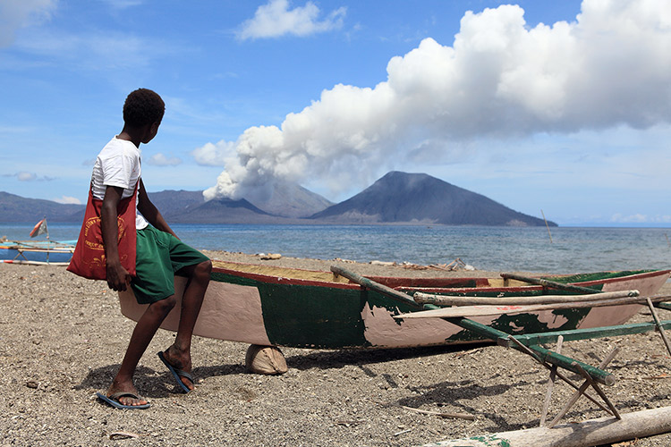 1994年にはラバウルの火山が大噴火を起こして、当時7万人が住んでいたラバウル市を壊滅させてしまった。タバルビュル火山とバルカン火山の二つの火口がほぼ同時に噴火し、市内に厚さ5mにも達する大量の火山灰を降り積もらせてたという。