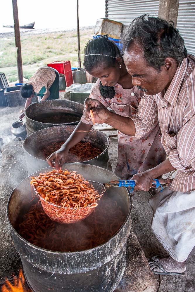 ジャフナの海岸線沿いにある小さな漁村に、エビの加工工場があった。