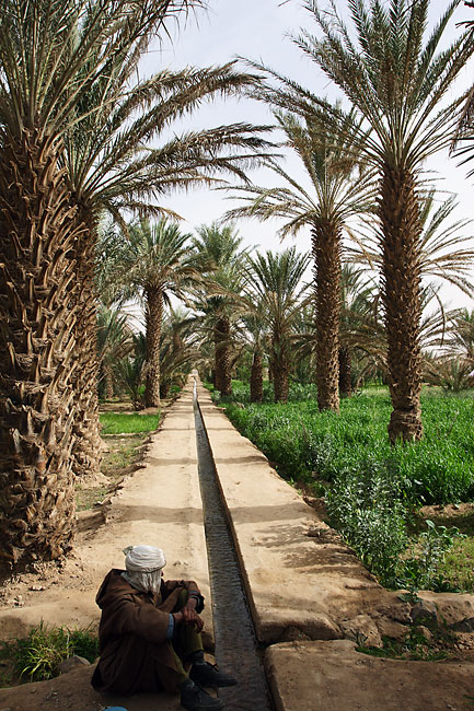 オアシスの町にある農園を流れる用水路。この細い流れが、人々の命を支えている。