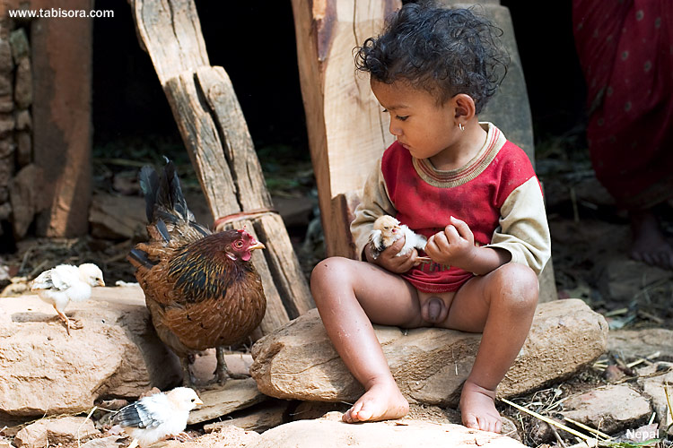 ネパールの幼子たちは下半身裸のままで過ごしている。おむつのようなものはないし、小でも大でも、したくなれば庭先ですればいいだけなのだ。