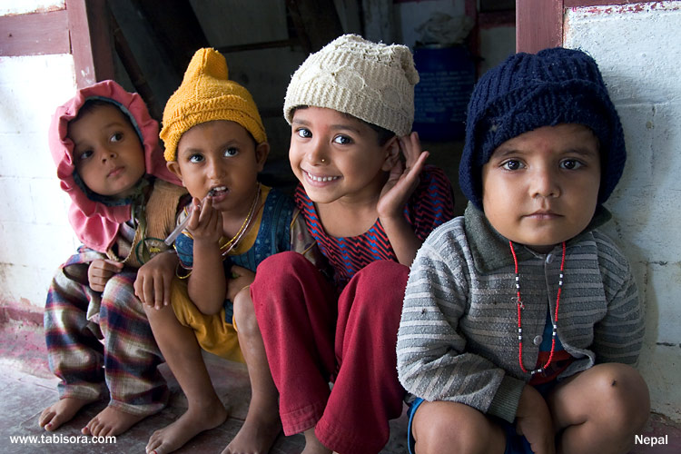 四つ並んだ色違いの帽子が可愛らしかったので、子供たちにカメラを向けた。