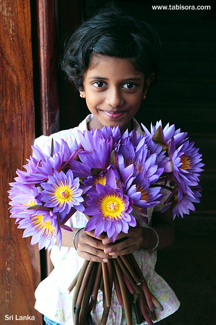 カルタラにある寺院の中で、色鮮やかな花を手にした少女に出会った。
